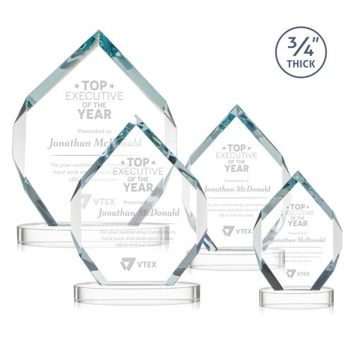 Of the Crystal Awards, this beautiful Royal Diamond Award on Alberton Base - Starfire is a great choice. (AWS10071) The Royal Diamond is a symmetrical six-sided Starfire award with constant-width bevels on the front top and bottom sides and on the back middle sides. The prominent, highly polished bevels accentuate the sparkle of the glass, generate diverse and attractive reflections along the edges, and frame the central etching area. Mounted on an oval Alberton Base.