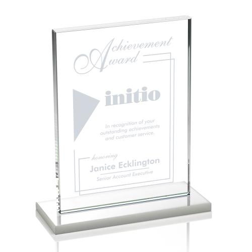 Of the Crystal Awards, this beautiful Emperor Award - White (Vert) is a great choice. (AWS2602-VW) The Emperor Award is a simple yet elegant 0.5" thick Starfire Crystal rectangle upright mounted vertical or horizontal on an ivory crystal base. An ideal award featuring a large decorating area to recognize a significant achievement.