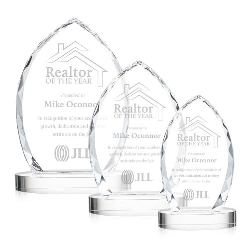 Of the Crystal Awards, this beautiful Wilton Award on Alberton Base - Clear is a great choice. (OPT29161) The opulent Wilton Optical Crystal Award is a marvelous recognition piece that is framed with a multi-faceted diamond edge that creates an incredible display of refracted light. The sparkling window into your exceptional achievement is further enhanced with our oval Alberton optical crystal base.