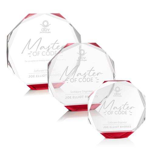 Of the Crystal Awards, this beautiful Acadian Award - Red is a great choice. (OPT3731-R) The Acadian Award is a stunning freestanding recognition piece crafted from premium optical crystal, designed to celebrate excellence with brilliance and color. Its multi-faceted design captures and reflects light beautifully, while the vibrant crystal base-available in emerald, gold, sapphire, or red-adds a striking accent. Perfect for honoring achievement or leadership, the Acadian Award combines elegance and prestige in a timeless presentation. Also available in clear.