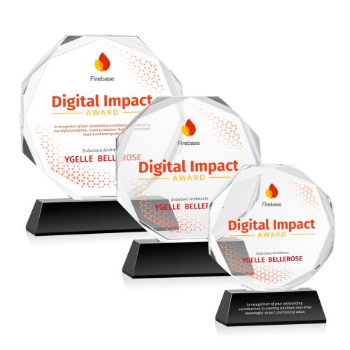 Of the Crystal Awards, this beautiful Acadian VividPrint™ Award on Newhaven Base - Black is a great choice. (OPV37351-K) The Acadian VividPrint Award on Newhaven base is a stunning recognition piece crafted from premium optical crystal, designed to celebrate excellence with brilliance and color. Its multi-faceted design captures and reflects light beautifully, while the vibrant crystal base-available in 9 different colors-adds a striking accent. Perfect for honoring achievement or leadership, the Acadian Award combines elegance and prestige in a timeless presentation. Bring your artwork to life with full-color VividPrint!