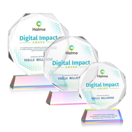 Of the Crystal Awards, this beautiful Acadian VividPrint™ Award on Newhaven Base - Prismatic is a great choice. (OPV37351-M) The Acadian VividPrint Award on Newhaven base is a stunning recognition piece crafted from premium optical crystal, designed to celebrate excellence with brilliance and color. Its multi-faceted design captures and reflects light beautifully, while the vibrant crystal base-available in 9 different colors-adds a striking accent. Perfect for honoring achievement or leadership, the Acadian Award combines elegance and prestige in a timeless presentation. Bring your artwork to life with full-color VividPrint!