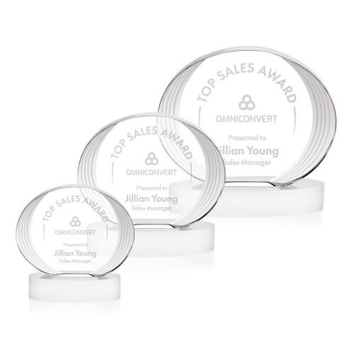 Of the Crystal Awards, this beautiful Sheraton Award on Base - White is a great choice. (OPT47061-W) The Sheraton Oval Award on Base features a sleek, concave oval design with a striped, ridged edge that creates a refined fanfare around the imprint area. Its layered detailing adds depth while elegantly highlighting your personalized message or logo. Mounted on a solid base, this award offers a polished and contemporary way to honor achievement.