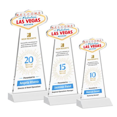 Of the Crystal Awards, this beautiful Las Vegas VividPrint™ Award - White is a great choice. (AWV4271-W) What happens in Vegas deserves to be celebrated in style. The Las Vegas VividPrint Award is crafted from premium starfire crystal, featuring an iconic Las Vegas sign cutout at the top with a vibrant printed design included. Mounted on a front-mitered crystal base, this striking piece is perfect for recognizing standout achievements and unforgettable milestones.