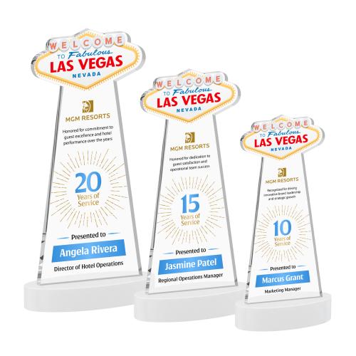Of the Crystal Awards, this beautiful Las Vegas VividPrint™ Award on Alberton Base - White is a great choice. (AWV42751-W) What happens in Vegas deserves to be celebrated in style. The Las Vegas VividPrint Award is crafted from premium starfire crystal, featuring an iconic Las Vegas sign cutout at the top with a vibrant printed design included. Mounted on an oval Alberton crystal base, this striking piece is perfect for recognizing standout achievements and unforgettable milestones.