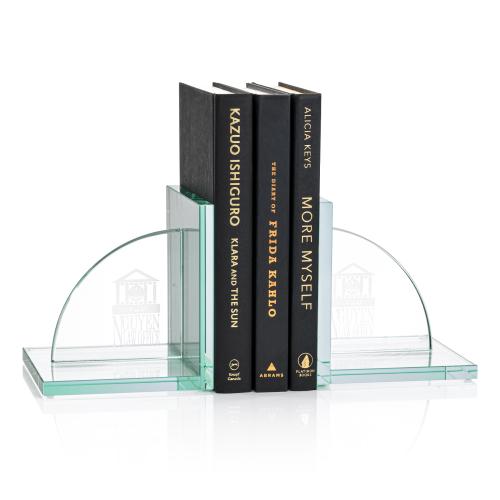Elevate your shelf with the Amberwood Bookends, where the seamless blend of utility and aesthetic appeal is paramount. These bookends feature a unique arch and crescent design, harmoniously pairing clear glass elegance with steadfast support. Ideal for personalization, the deep etch decoration method allows for a bespoke touch, making it the perfect gift for commemorating achievements or honoring milestones. The refined silhouette ensures that your treasured books are displayed with sophistication, resulting in a captivating visual balance that is both functional and artistically delightful-a splendid addition to any office or home library.