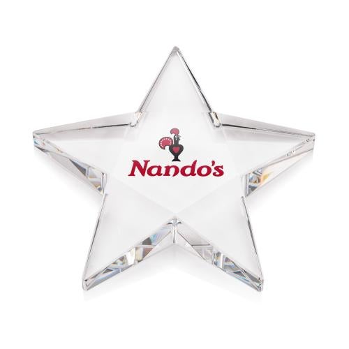 Of the Crystal Paperweights, this beautiful Pentagon Star VividPrint™ Paperweight is a great choice. (OPV601) The Pentagon Star VividPrint Paperweight will shine as bright as the VividPrint decoration on it! Featuring beautiful faceted Optical Crystal with a flat imprint area located on the bottom. Packaged in a satin-lined presentation gift box.