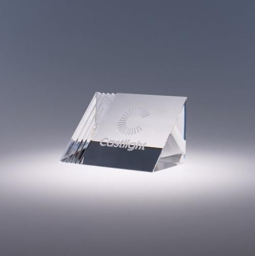 Of the Crystal Paperweights, this beautiful Triad Crystal Paperweight is a great choice. (1412) Not your typical paperweight! A blend of contemporary and traditional, this paperweight sparkles from afar due to its triangular shape and hand-cut flutes. Materials: Optic Crystal Decoration: Deep Etch, Color Fill