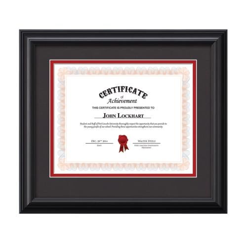 Of the Certificate Frames, this beautiful Cottingham - Black is a great choice. (PFN9644-132) The Cottingham certificate wood frame is available in 10 rich matte colors to create a stunning display of achievement for your office.
