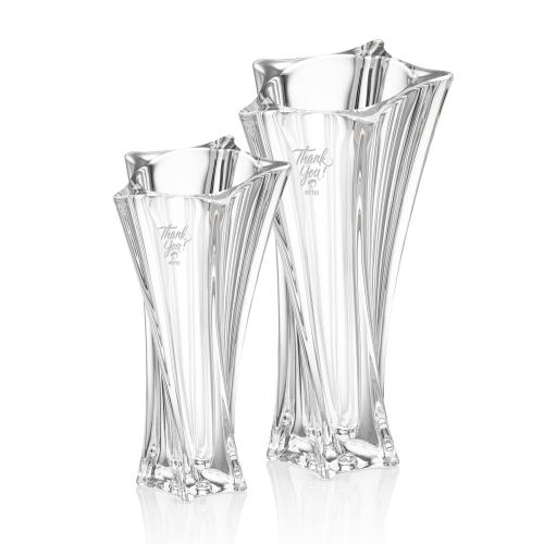 Of the Vase & Bowl Awards, this beautiful Manzini Waisted Vase is a great choice. (VSE5936) Spectacular thick star shaped Lead Free Crystal Vase. Available in 2 sizes.