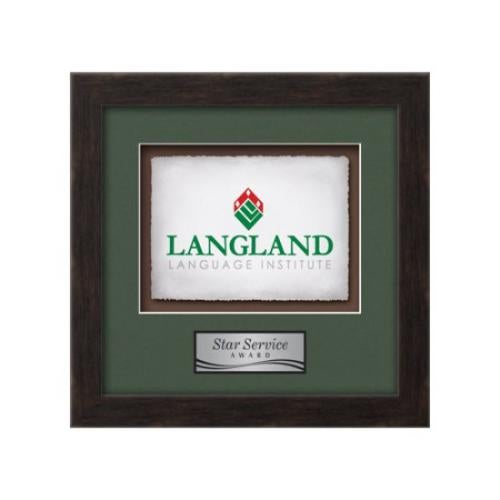 Of the Framed Awards & Plaques, this beautiful Eldridge - Espresso Dark Walnut is a great choice. (WLVC-11D-S1) Waterleaf Studios special VividPrint process precisely replicates your full color artwork onto handcrafted artisan paper. Combining the vintage, old world look and feel of handcrafted paper with the vibrant VividPrint process creates a truly unique and dynamic statement of achievement. Framed with our museum quality Eldridge molding, your choice of 2 standard mattes and a personalization plate.