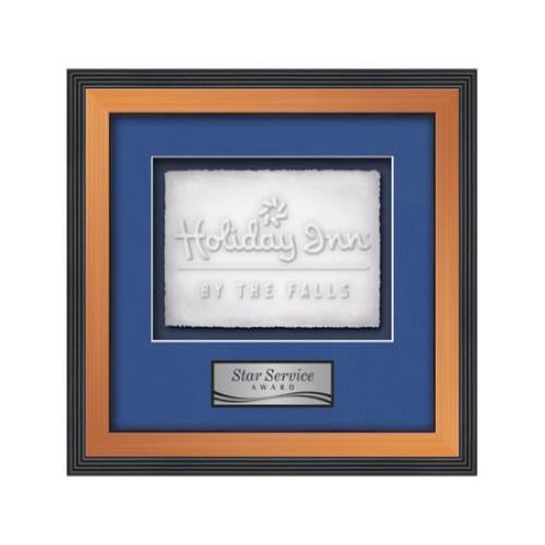 Of the Framed Awards & Plaques, this beautiful Jasper - Bronze is a great choice. (WLC-08B-H1) The Jasper Cast Paper Framed Award capitalizes on the contrast between the organic, delicate nature of cast paper art and the stunning permanent gallery presentation for achievement recognition. This framed work of art is surrounded by our exquisite Jasper molding, your choice of 2 standard mattes and a personalization plate to give your accomplishment a remarkable, dramatic display.