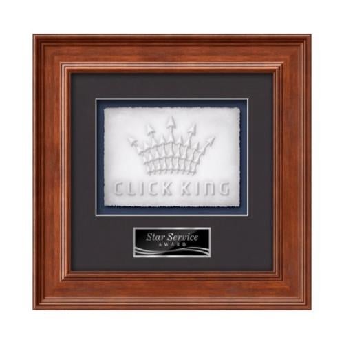Of the Framed Awards & Plaques, this beautiful Calder - Light Walnut is a great choice. (WLC-03L-S1) The Calder Cast Paper Framed Award capitalizes on the contrast between the organic, delicate nature of cast paper art and the stunning permanent gallery presentation for achievement recognition. This framed work of art is surrounded by our exquisite Calder molding, your choice of 2 standard mattes and a personalization plate to give your accomplishment a remarkable, dramatic display.