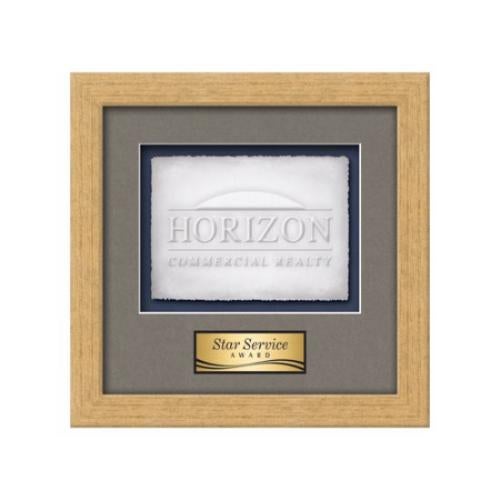Of the Framed Awards & Plaques, this beautiful Eldridge - Antique Gold is a great choice. (WLC-11N-H1) The Eldridge Cast Paper Framed Award capitalizes on the contrast between the organic, delicate nature of cast paper art and the stunning permanent gallery presentation for achievement recognition. This framed work of art is surrounded by our exquisite Eldridge molding, your choice of 2 standard mattes and a personalization plate to give your accomplishment a remarkable, dramatic display.