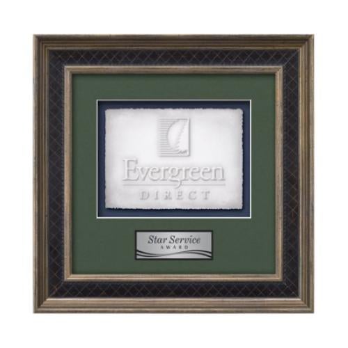 Of the Framed Awards & Plaques, this beautiful Tuscan - Rustic/Charcoal is a great choice. (WLC-35R-H1) The Tuscan Cast Paper Framed Award capitalizes on the contrast between the organic, delicate nature of cast paper art and the stunning permanent gallery presentation for achievement recognition. This framed work of art is surrounded by our exquisite Tuscan molding, your choice of 2 standard mattes and a personalization plate to give your accomplishment a remarkable, dramatic display.