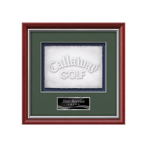 Of the Framed Awards & Plaques, this beautiful Baron - Mahogany/Silver is a great choice. (WLC-51S-H1) The Baron Cast Paper Framed Award capitalizes on the contrast between the organic, delicate nature of cast paper art and the stunning permanent gallery presentation for achievement recognition. This framed work of art is surrounded by our exquisite Baron molding, your choice of 2 standard mattes and a personalization plate to give your accomplishment a remarkable, dramatic display.