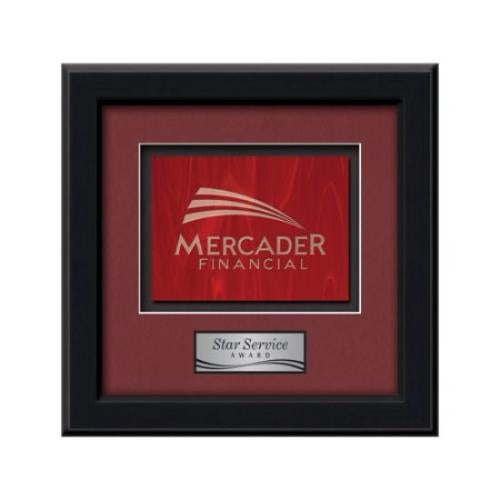 Enhance your recognition program with the Myriad - Black award's timeless elegance. Expertly framed in a lustrous black finish, this award is sure to command attention in any setting. The vibrant, stained glass-inspired insert available in four colors radiates with sophistication, making each accolade truly distinct. Delight in knowing your honorees will appreciate the thoughtfulness of this gift, as the customizable personalization plate allows for their name and achievement to shine brilliantly. Perfect for corporate acknowledgments, educational accomplishments, or any special milestone, the Myriad - Black is an impeccable choice for conveying esteem and appreciation.