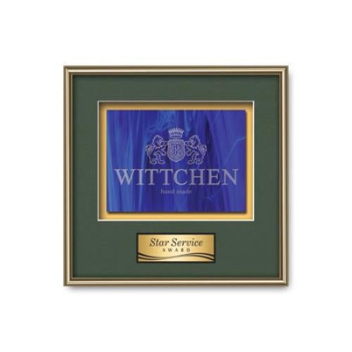 Of the Framed Awards & Plaques, this beautiful Fenestra - Gold is a great choice. (WLS-70G-V1) This dazzling new collection of Stained Glass Framed Awards is inspired by the romance of spectral light streaming through the color-glazed windows of a magnificent cathedral. When combined with our exquisite Fenestra molding, your choice of 2 standard mattes and a personalization plate, this work of recognition will give any achievement a classic, refined appearance. Stained Glass available in Black, Blue, Red & Green. Please note that the nature of this product may result in occasional flow lines, different color hues and air bubbles that add to the allure of stained glass and are not considered defects.