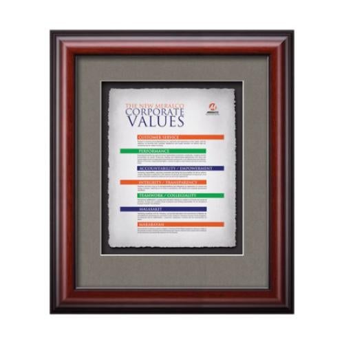 Of the Framed Awards & Plaques, this beautiful Cornaro - Mahogany is a great choice. (WLTC-12M-H1) Commemorate a milestone achievement with Waterleaf Studios' Certificate collection. Honor years of service, display diplomas, service awards, company mission statements, mergers & acquisitions or extraordinary achievements with these impressive statements of accomplishment. Your words of recognition are reproduced in full color on handcrafted artisan paper with your choice of 2 standard mattes and framed in our museum quality Cornaro molding.