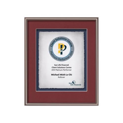 Of the Framed Awards & Plaques, this beautiful Fenestra - Bronze is a great choice. (WLTC-70B-H1) Commemorate a milestone achievement with Waterleaf Studios' Certificate collection. Honor years of service, display diplomas, service awards, company mission statements, mergers & acquisitions or extraordinary achievements with these impressive statements of accomplishment. Your words of recognition are reproduced in full color on handcrafted artisan paper with your choice of 2 standard mattes and framed in our museum quality Fenestra molding.
