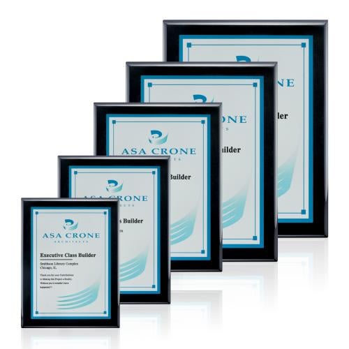 Celebrate achievements with the Oakleigh/AstroSub - Black/Silver plaque, where timeless elegance meets modern technology. The lustrous ebony or rosewood piano finish backing serves as the perfect canvas for your customized message or logo, vividly brought to life through state-of-the-art full-color sublimation. Each plaque exudes sophistication, framed in deep black to enhance the visual appeal of your personalized design. Ideal for corporate awards, educational accolades, or a commemorative gift, these plaques stand as a testament to excellence and a reflection of distinguished recognition. Offered in various sizes, find the perfect fit to honor any milestone.