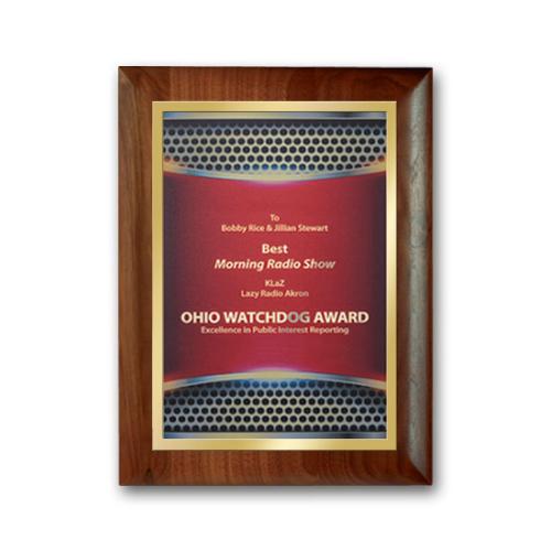 Of the Full Color Plaques, this beautiful SpectraPrint™ Plaque - Rolled Edge Gold is a great choice. (7402.19-RE) Digitally reproduce your artwork in full color on a gold plate, mounted to our walnut plaque with rolled edges.