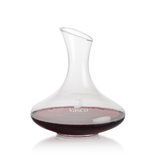 Of the Carafes, this beautiful Innisfil Carafe is a great choice. (BWC718) The large 50oz capacity and wide bowl of the Lead-Free Crystalline Innisfil Carafe is perfect for serving full-bodied red wines like cabernet sauvignon. Paired with 2 or 4 of our Elderwood Crystalline wine glasses and packaged in a satin-lined gift box to make an elegant gift for a special VIP or deserving employee.