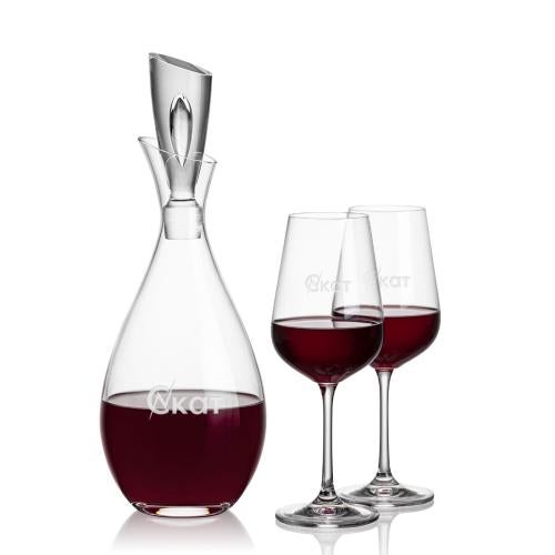 Of the Carafes, this beautiful Juliette Decanter & Laurent Wine is a great choice. (BWC725-2LR) The Juliette Decanter captures elegance and sophistication while decanting your wine to perfection. This set comes with our Laurent 12oz Stemmed Wine Glass, perfect for either a full-bodied Cabernet or a light bodied Riesling. A perfect gift for the holiday season or that special event or ceremony.