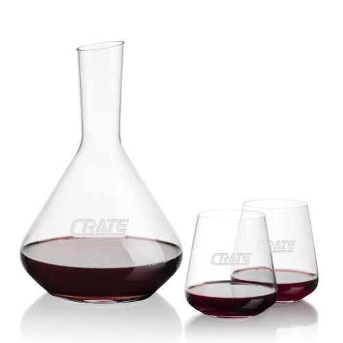 Of the Carafes, this beautiful Terrassa Carafe & Breckland Stemless Wine is a great choice. (BWC7191-2BK) A carafe set is a staple in every wine connoisseur's collection and The Terrassa Carafe & 2 Breckland Stemless Wine set is a stellar choice. This 54oz medium-sized carafe is perfect for medium bodied red wines and is accompanied by your choice of 2 or 4 8oz Breckland Stemless Wine glasses. This is an excellent set that will enhance the aromas and flavors of your favorite vintage while elevating your guests' overall experience. A perfect executive gift.