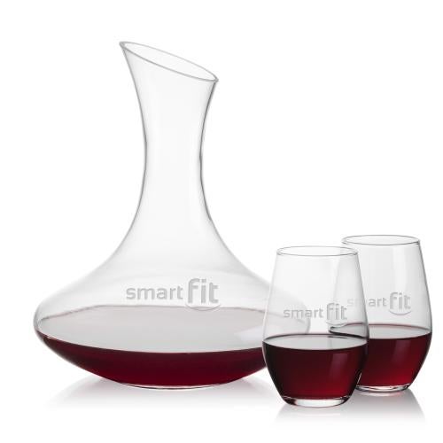 Of the Carafes, this beautiful Hampton Carafe & Vale Stemless Wine is a great choice. (BWG6181-2VL) Our exquisite 60oz Hampton Carafe is paired with your choice of 2 or 4 stemless wine glasses to create the perfect gift set for every wine aficionado! Unlock the characteristics of a young wine and elevate your tasting experience with this incredible set.