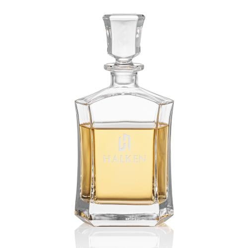 Of the Decanters, this beautiful Avalon Decanter & Lid is a great choice. (BWC5766) The bold and striking Avalon Decanter features a curvy twist on the classic squared whiskey decanter with a waisted body and flared lid. Made from lead-free Crystalline and the large 25oz capacity fits your favorite standard whiskey, bourbon, or rye bottle. Packaged in a satin-lined presentation gift box for an exquisite and opulent executive gift.