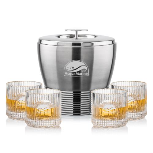 Of the Barware Gift Sets, this beautiful Genoa Ice Bucket & Dillard On-the-Rocks Set is a great choice. (SST1043-2DL) The Genoa Ice Bucket & On-the-Rocks Set is designed for effortless entertaining with a sleek, contemporary touch. The stainless steel Genoa ice bucket features a distinctive ribbed base that adds texture and stability while keeping ice cold with double-walled insulation. Paired with crystal-clear on-the-rocks glasses, this set is perfect for enjoying whiskey, cocktails, or mixed drinks in style.
