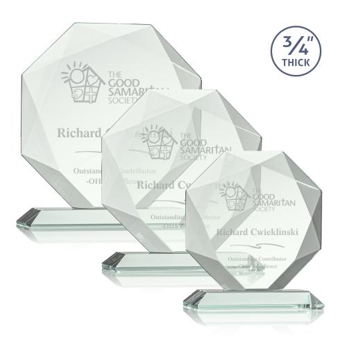 Of the Glass Awards, this beautiful Bradford Award - Jade is a great choice. (AWJ1801) Spectacular Jade award with deep recessed bevels forming a striking octagonal design. Also available in Starfire. 3 sizes to choose from.