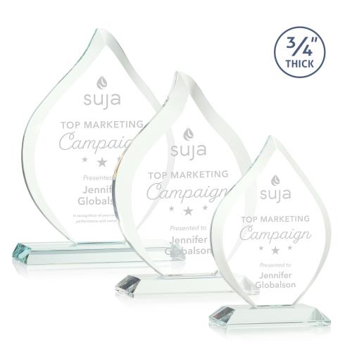 Of the Glass Awards, this beautiful Worthington Flame Award - Jade is a great choice. (AWJ7101) The Stunning Worthington Award is a Jade Crystal Flame with deep bevels on a mitered base. A brilliant award to recognize exceptional achievements. Packaged in a black satin-lined presentation gift box. Available in Starfire Crystal and your choice of 9 distinct colored bases.