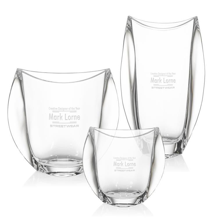 Crystal is crafted from higher-quality materials than glass, producing superior clarity and a refined, beautiful finish. It reflects light in a way glass doesn't, making crystal vase engraved pieces ideal for high-end awards.