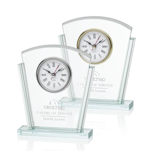 Of the Retirement Awards, this beautiful Camano is a great choice. (CLK9501-S) Beautiful Jade Clock with Chrome clock face. Glass accented sides with a frosted curved top.