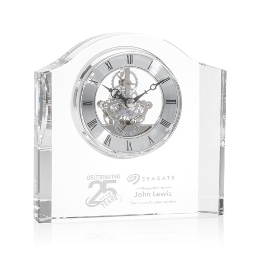 Of the Retirement Awards, this beautiful Burchfield Clock is a great choice. (CLK754) The Burchfield Clock is a thick Optical Crystal Clock with curved top and a classic mechanical clock face. A timeless gift that is sure to impress!