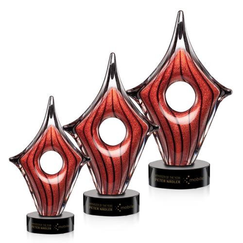 Of the Retirement Awards, this beautiful Rialto Award is a great choice. (ARG7241) Show your gratitude and appreciation with the stunning Rialto award. Recognize your star performer with this individually hand blown work of art. Red speckles and black flourishes lay within the glass to create a truly spectacular affect. Available in 3 sizes. 1 Colorfill Included