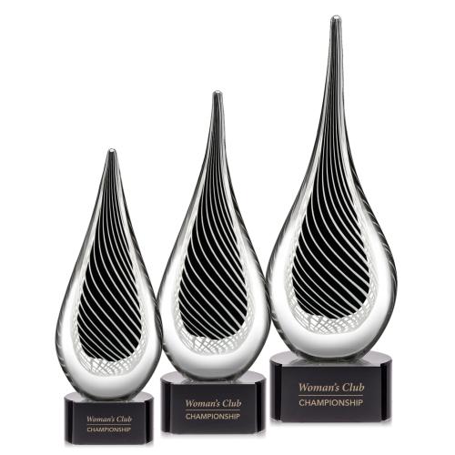 The Constanza Award - Black is a symbol of elegance and distinction. Perfect for recognizing exceptional achievements, this captivating flame-shaped art glass stands tall on a substantial black base, providing ample space for personalized engravings that celebrate success and commemorate events. The mesmerizing interplay of black and white hues spirals upward, capturing the essence of growth and dynamism. With its sophisticated design, the Constanza Award embodies the spirit of excellence, making it an unforgettable token of appreciation that will captivate the eyes and hearts of its esteemed recipients.